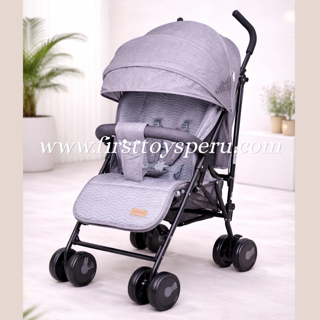 El coche de Little Baby está diseñado para hacer tus salidas más fáciles, con estructura resistente, llantas EVA para un paseo suave, asiento reclinable y capota con filtro UV. Su diseño ligero y correa de transporte lo convierten en el aliado perfecto para llevar a tu bebé con comodidad y seguridad en todo momento.